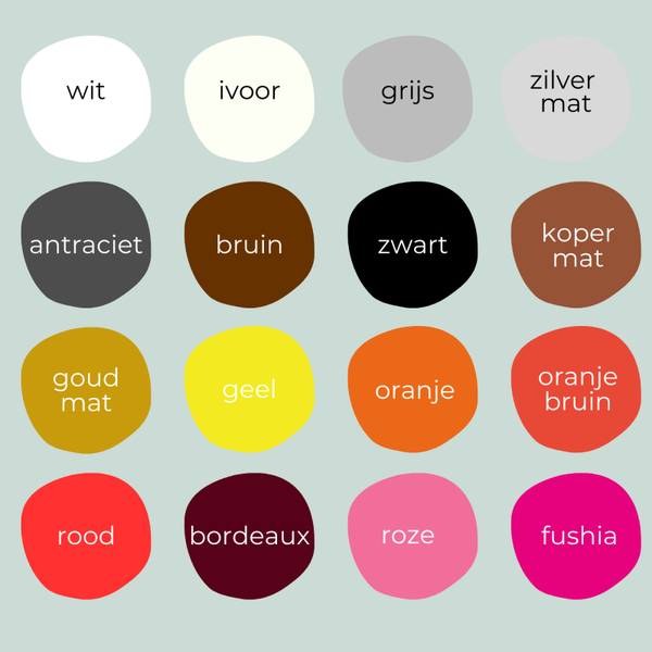 Opmerking: Hoe langer de naam, hoe kleiner de letters worden bij een bepaalde breedte. Indien de leesbaarheid in het gedrang komt zullen we je eerst contacteren.