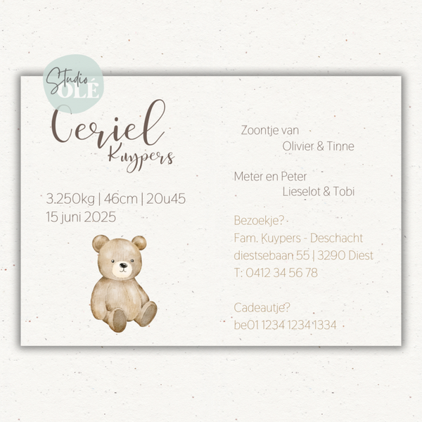 - Lettertype, kleur en formaat zoals het collectiekaartje. Deze kunnen niet aangepast worden.