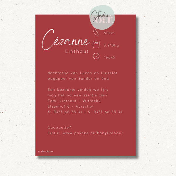 - Geboortekaartjes krijgen steeds voorrang en worden indien mogelijk dezelfde dag gedrukt zo niet, de dag erna (uitgezonderd op feestdagen en zondagen.)