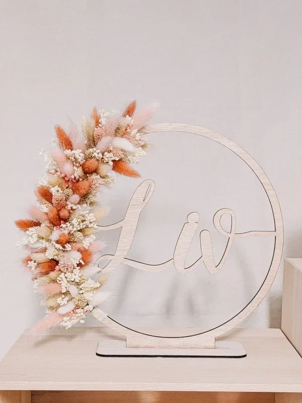 🌿 Houten letter met droogbloemen – €35
